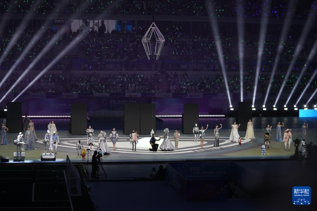 ??歌舞節目《歡迎來到碳基生命的世界》中,人類舞者與機器人以流暢協作演繹“碳基與硅基的對話”;服飾走秀節目《天工霓裳》則將非遺技藝與未來設計完美融合……14日的開幕式上,超百支戰隊閃耀“冰絲帶”,各式機甲競展風采,機器人街舞、戲曲輪番登場,更與專業街舞團聯袂獻藝,生動演繹科技與人類文明的碰撞交融。隨著舞臺中央的“智芯”裝置——鑲嵌藍色晶體芯片的金屬四棱錐被點亮,2025世界人形機器人運動會正式啟動。